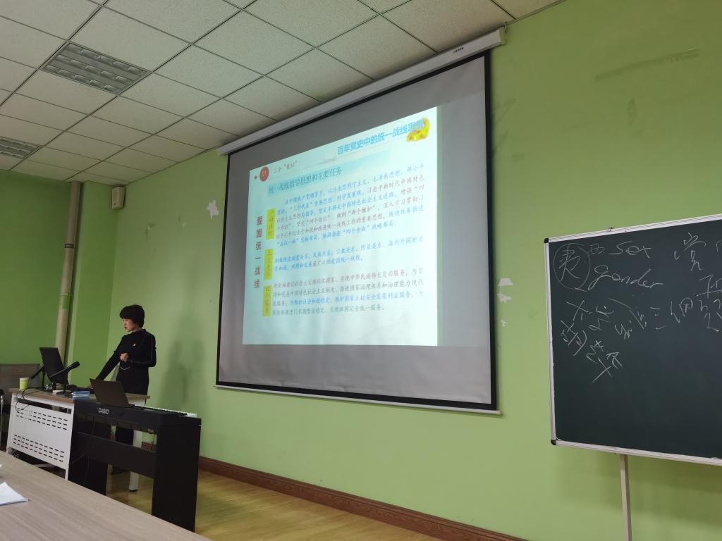 最后栗秀萍书记指出,统一战线这个“重要法宝”,历来是党的总路线总政策的重要组成部分,与党的光辉历程和辉煌业绩紧密联系在一起。为了实现中华民族伟大复兴,中国共产党团结带领中国人民,开辟了伟大道路、建立了伟大功业、铸就了伟大精神、积累了宝贵经验,在中华民族发展史和人类社会进步史上写下了壮丽篇章,我们党所创建的统一战线也历史地成为把广大矢志复兴梦想的爱国人士、爱国力量团结在自己周围的坚固纽带,推动了党和国家事业的兴旺发达。新的征程已经开启,集众智,汇众力,统一战线这一“重要法宝”将会展现愈加强大的生命力。