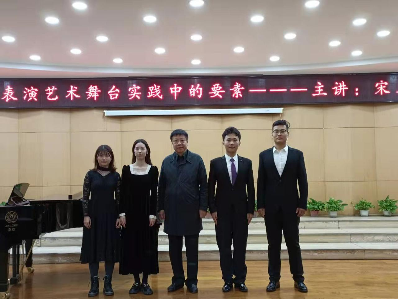 讲座《声乐表演艺术舞台实践中的要素》,在老师和同学们热烈的掌声中结束。此次讲座,宋教授结合了自身多年丰富的舞台表演经验和深厚的声乐艺术修养,运用生动诙谐的讲授方式,使在座的老师和同学们受益良多。