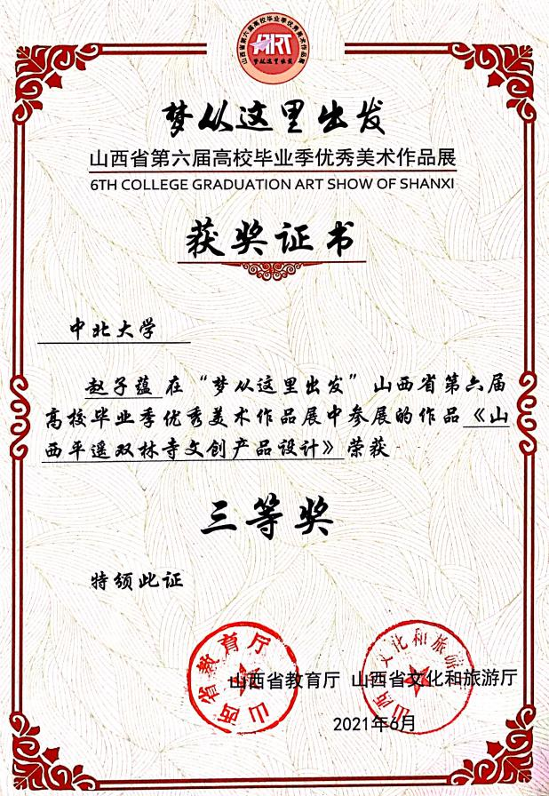 “梦从这里出发”山西省第六届高校毕业季优秀美术作品展于6月10日至7月10日在线上举行。我校获“优秀组织奖”,参赛作品获得21项奖项,其中一等奖2项,二等奖4项,三等奖6项,优秀奖9项,创我校在该项赛事中的最好成绩。
