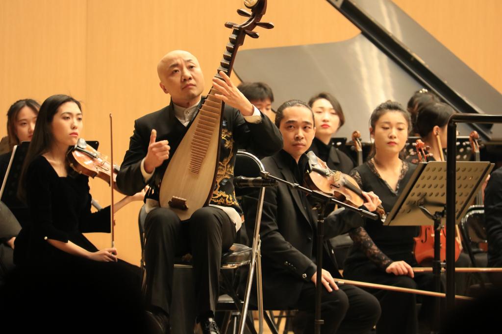 师生奉献了《红旗颂》《第二圆舞曲》《流浪之歌》《匈牙利舞曲第五号》《云想花想》《第一交响曲》《军营之歌》《燃情岁月》《雷电波尔卡》《钢铁洪流》等11首中外经典曲目。专业精准的演奏、震撼心灵的旋律将表演一次次推向高潮,赢得现场师生阵阵热烈的掌声。交响音乐会在激情澎湃的《保卫黄河》歌声中圆满落幕。
