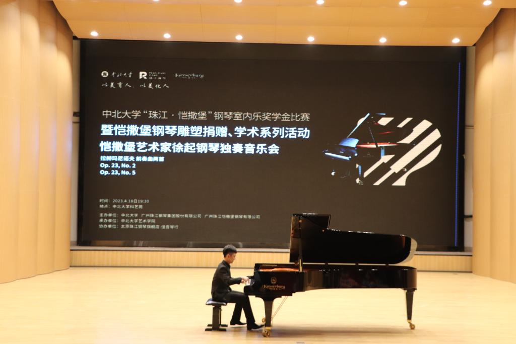 科艺苑举行恺撒堡艺术家徐起钢琴独奏音乐会。在音乐会中徐起老师演奏了拉赫马尼诺夫前奏曲两首、李斯特超技练习曲第一首到第十二首、王建中《浏阳河》、崔世光《松花江上》、舒曼/李斯特《奉献》、施特劳斯/格林费尔德《蝙蝠序曲》。