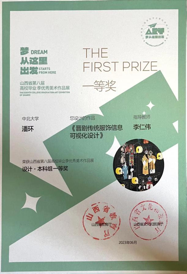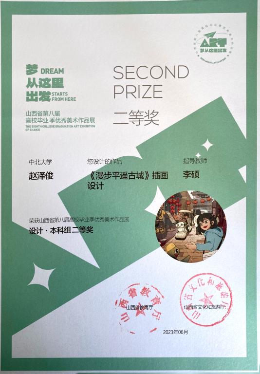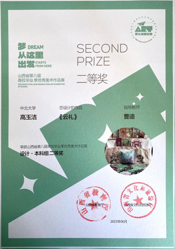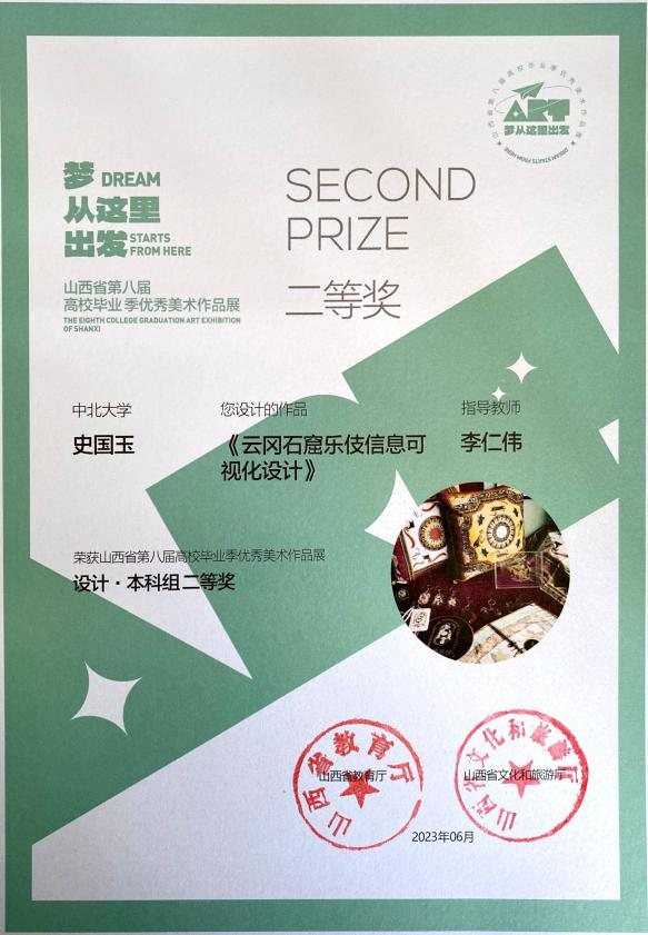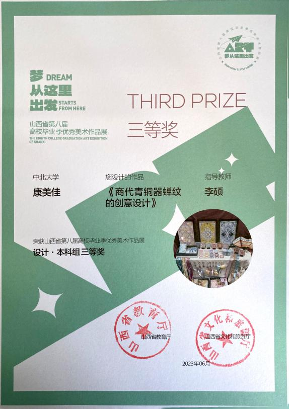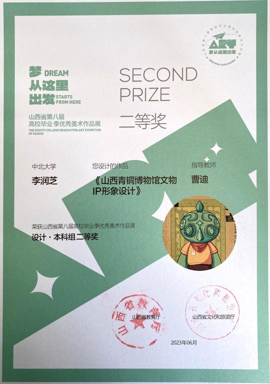 “梦从这里出发”山西省第八届高校毕业季优秀美术作品展于2023年6月13日至7月13日在山西省图书馆举办。我校获“优秀组织奖”,参赛作品获得10项奖项,其中一等奖1项,二等奖6项,三等奖3项。