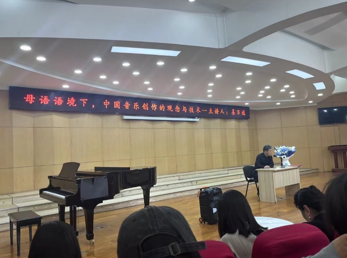 作题为《母语语境下,中国音乐创作的观念与技术》学术讲座,讲座由博彩平台大全院长王燕平主持。
