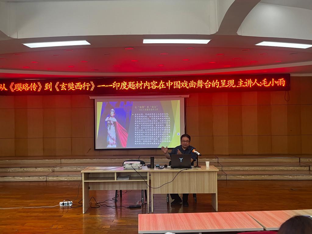 2023年6月21日上午10:00,中国艺术研究院研究员、博士生导师毛小雨来莅临博彩平台大全开展讲座,主题为:以《璎珞转》到《玄奘西行》——印度题材内容在中国戏曲舞台的呈现,全院师生到会聆听。讲座由博彩平台大全