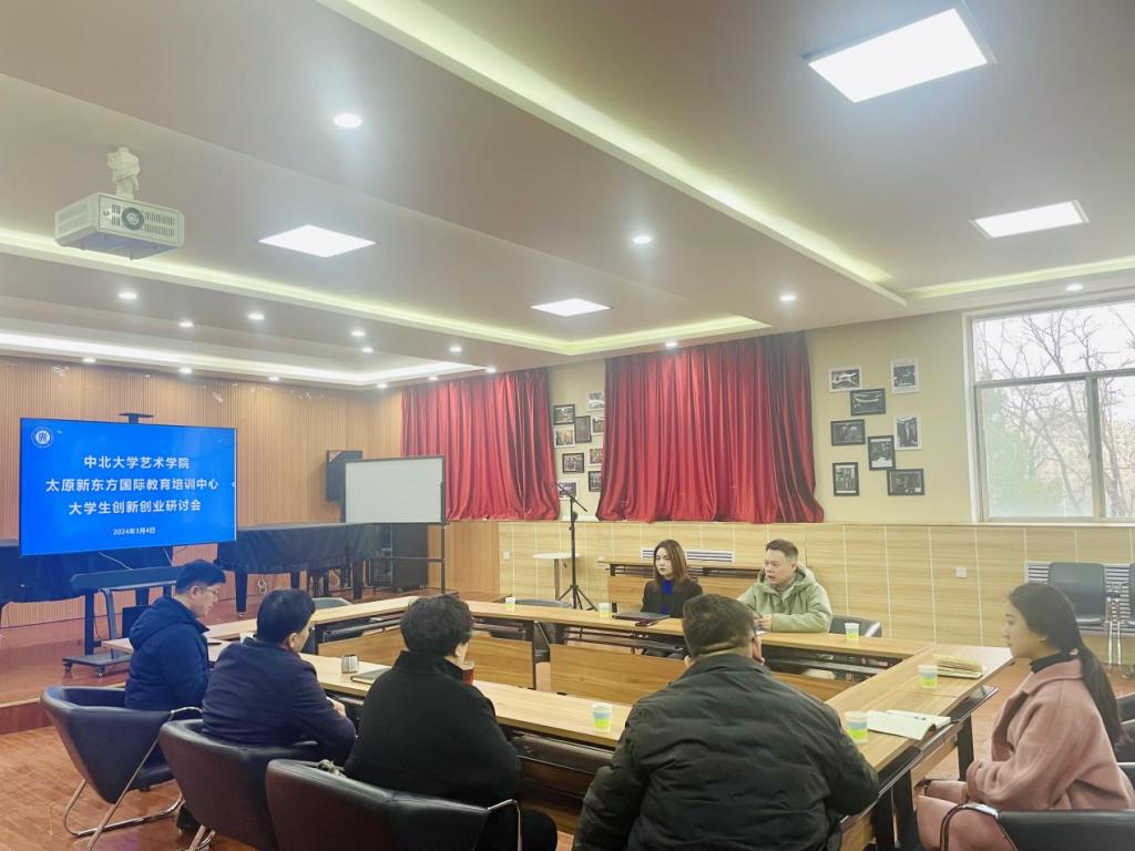 与太原新东方国际教育培训中心在12号楼二层工会之家举行大学生创新创业研讨会。太原新东方国际教育培训中心主任魏晓红、市场部负责人郝宁,博彩平台大全