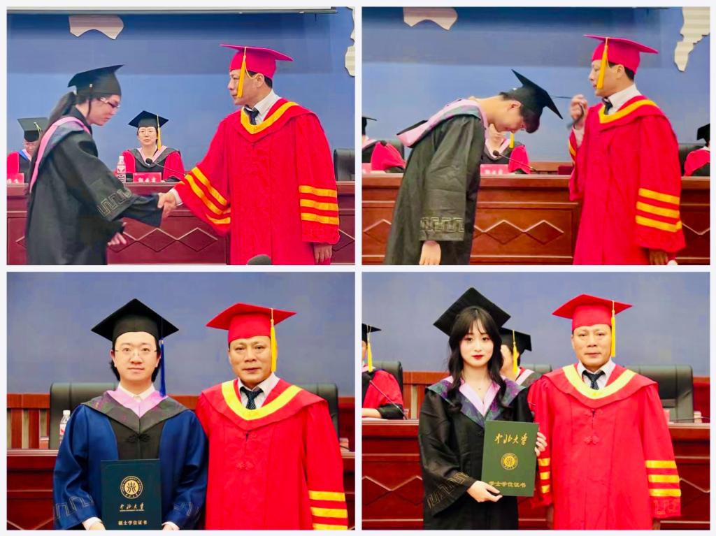 学位授予仪式上,在全体师生的共同见证下,王院长为全体2024届毕业生一一拨穗并授予学位;毕业生们带着无比激动和喜悦的心情,向王院长鞠躬致谢,并合影留念。
