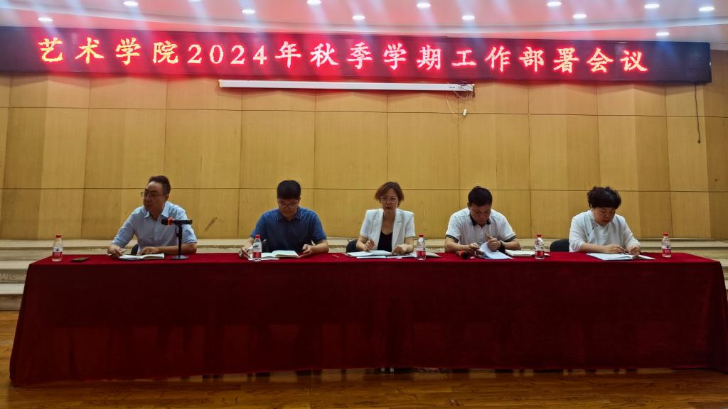 上学期和暑期工作取得的成效,并对全院教师的辛勤付出表示感谢。随后传达了学校新学期工作部署会议精神,并从任务、道路、形势三个方面分析了艺术学科当前的严峻形势,以及学校在创建双一流任务中每位老师即将面临的机遇与挑战。他还强调:“要深入领会和弘扬教育家精神,在做好新学期工作任务的同时,进一步凝练学科方向、挖掘办学特色;加强科研团队建设,紧跟国家形势逐步对传统学科进行升级改造。”