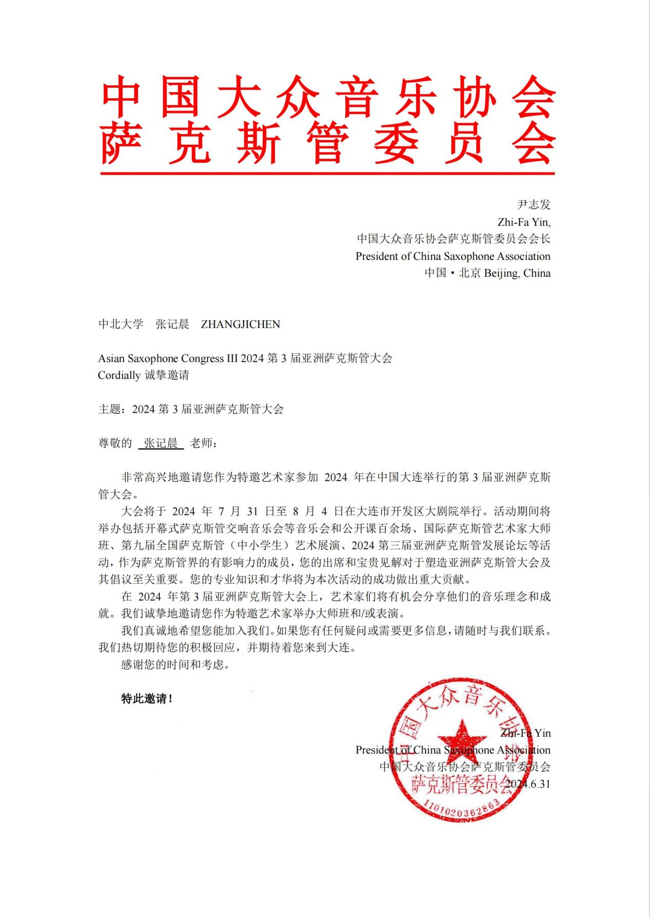 2024年7月31日至8月4日,第三届亚洲萨克斯大会在辽宁大连开发区大剧院成功举办,吸引了来自全球各地的萨克斯艺术家和学习者。张记晨博士作为特邀艺术家,不仅参与了音乐会演出,还担任展演比赛的评委。他的演奏获得了与会艺术家和观众的一致好评,充分展现了博彩平台大全