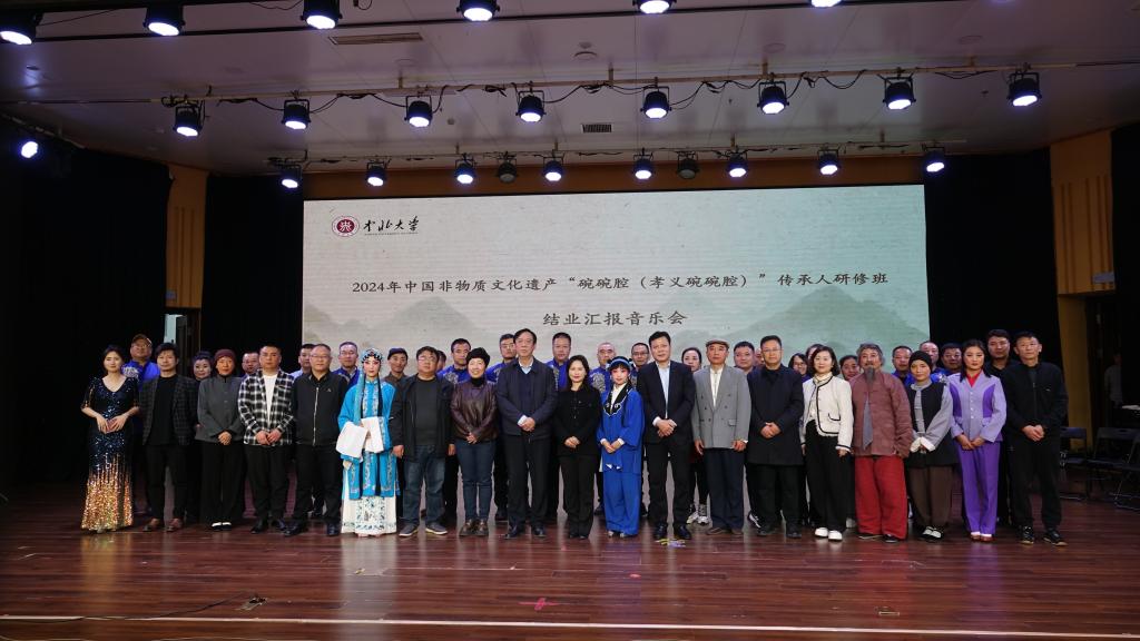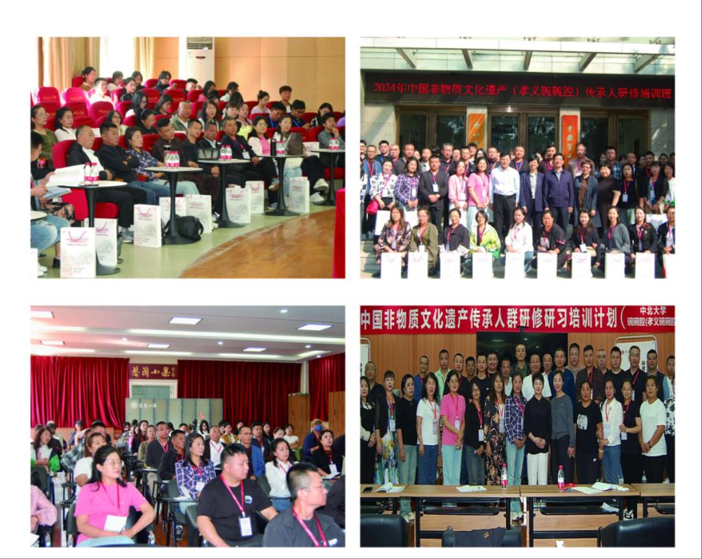 教学平台,发挥我校学科优势,采用数字化存储技术,建立非遗数据库,构建“数字化共享+个性化生产”的创新传承发展模式,全面提升非遗的社会能见度,促进非遗与现代生活的融合,丰富非遗保护的具体举措,激发非遗传承的活力,密切院校与地方社区的联系,促进相关的学科专业建设,增强高校的文化传承和文化创新能力。自开班以来,共邀请国内30余位知名专家、学者为学员讲授理论课、拓展课、实践课,培训总学时达226课时,参与培训的非遗传承人、技艺从业者、项目持有者共计110余人,挖掘、整理孝义碗碗腔传统戏剧近30余部,排演舞台剧目20余首,整理非遗传承人口述材料近15万字(拟录专著),带队交流、研讨及走访30余次。