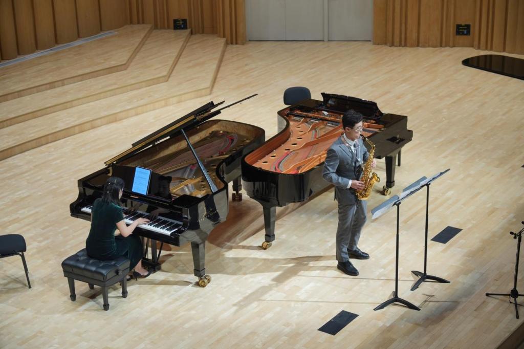 姜万通教授为萨克斯管创作的作品《西北谣》和《鸿雁主题随想曲》。张博士的精湛技艺和深情演绎,配合现场极具感染力的氛围,使得音乐会效果非凡,观众反响热烈,广受赞誉。