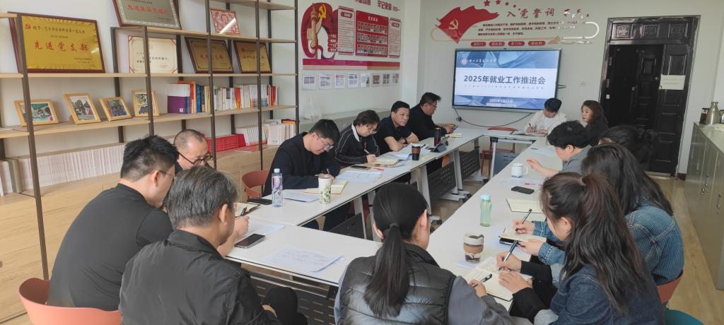 在9号楼519会议室召开2025年就业工作推进会。院党委书记郭云霞、院长王燕平,院党委副书记田维飞,副院长杨博华出席会议。各系主任、副主任,各科室负责人,就业辅导员参加了本次会议。