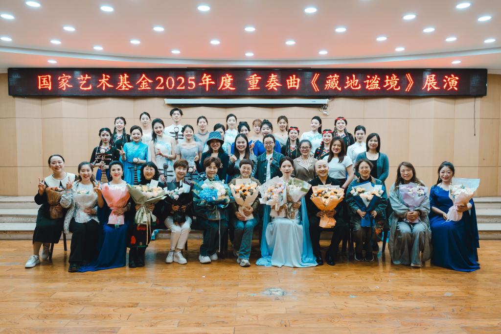 这是一场跨越地域、融合多元文化的音乐盛会。其中,由国家艺术基金2025年度小型剧(节)目和作品创作项目“彩票公益金资助——中国福利彩票和中国体育彩票国家艺术基金资助的重奏曲《藏地谧境》,作为本场音乐会的重头戏,充分发挥了琵琶音乐的张力和灵动,拓展了藏族乐器扎木念演奏的技术技巧和表现空间,描摹出一幕幕西藏人品日常生活的幸福之景,展现了新时代的中国形象,歌颂了藏族人民乐观积极、团结和睦的民族精神。这部作品既是对传统民族音乐的传承,更是新时代艺术创新的生动实践。