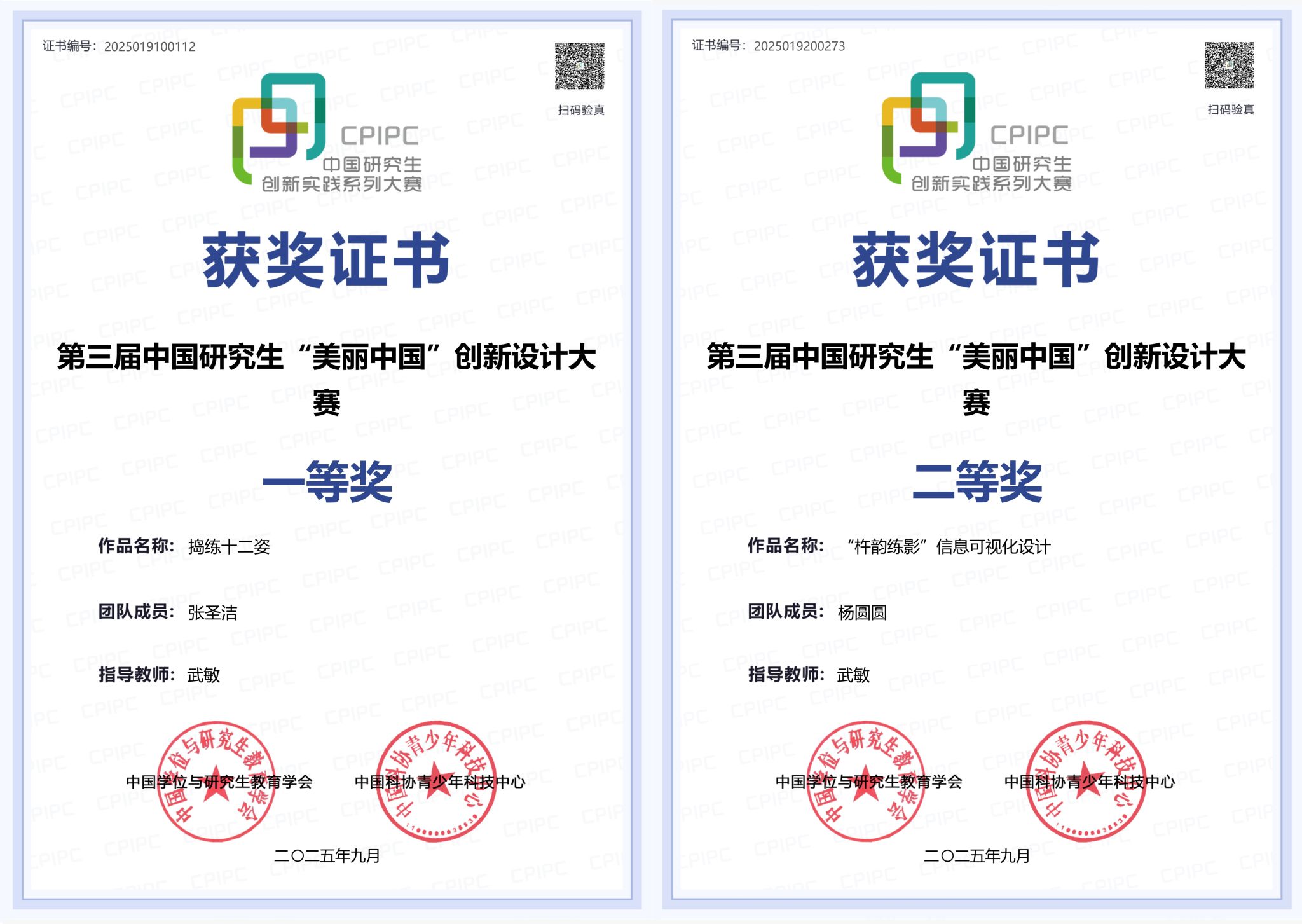 研究生张圣洁作品《捣练十二姿》一举摘得媒体传达设计赛道全国一等奖,杨圆圆作品《杵韵练影——信息可视化设计》荣获全国二等奖,实现了博彩平台大全