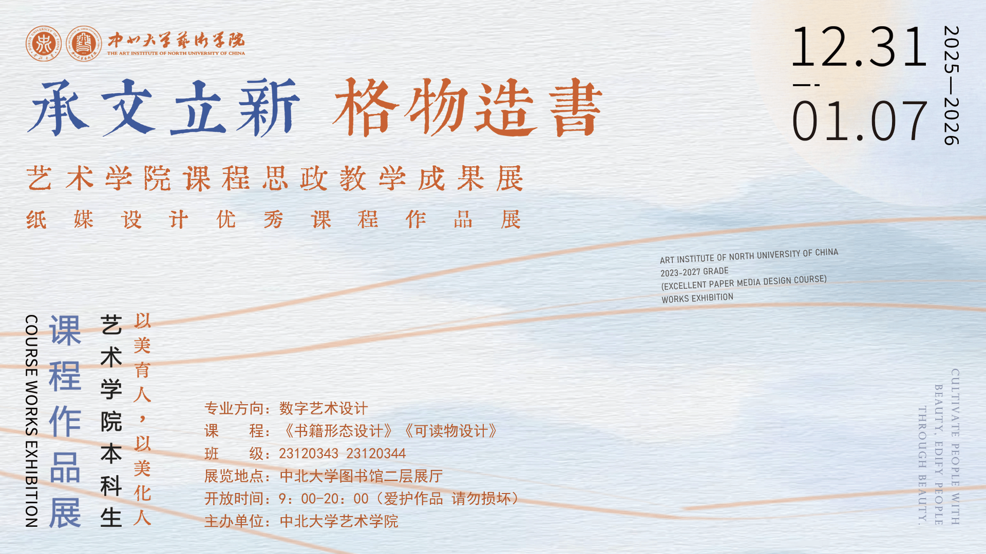 于校图书馆二层展厅,举办了“承文立新 格物造书”课程思政教学成果暨纸媒设计优秀课程作品展。