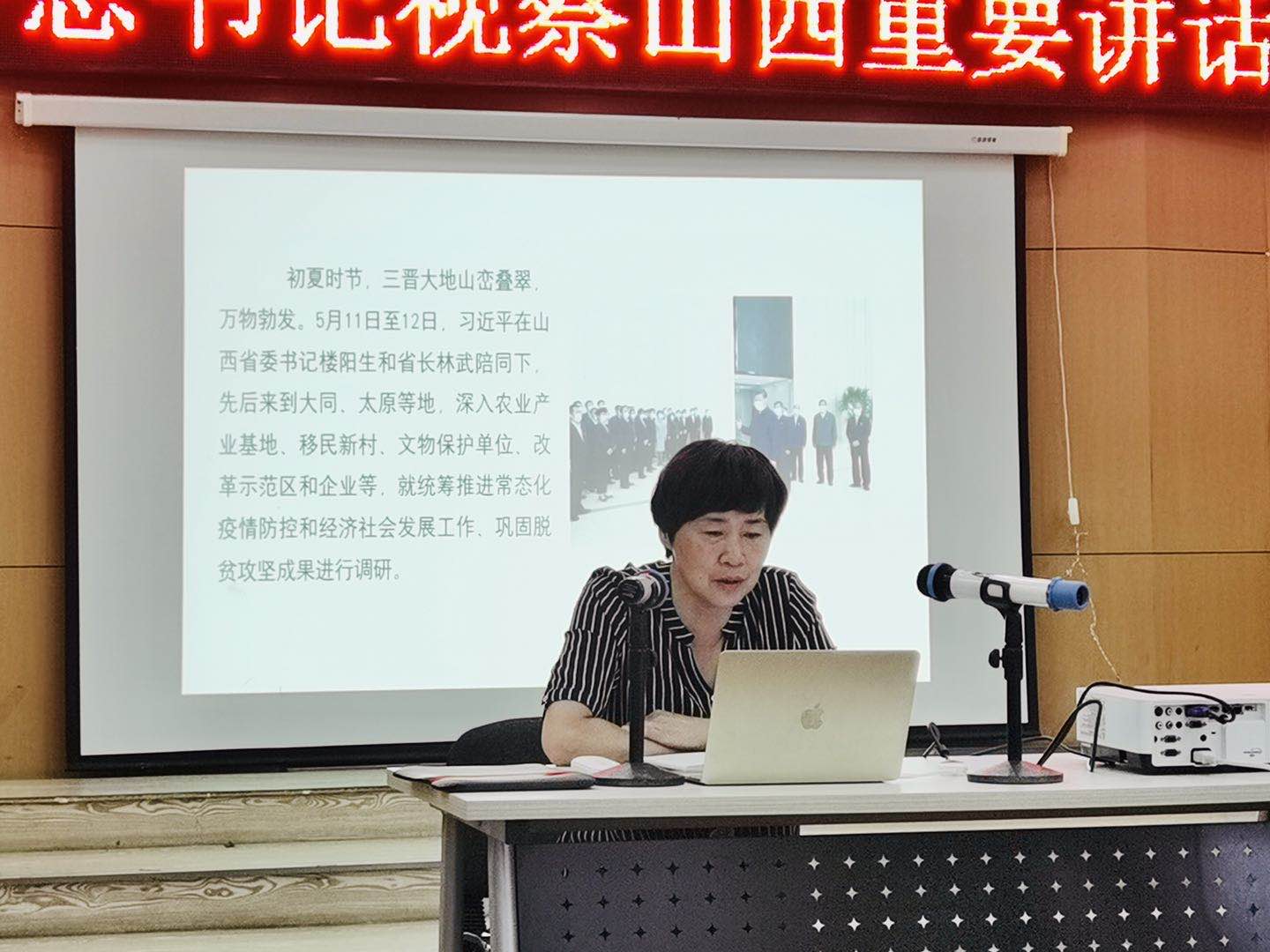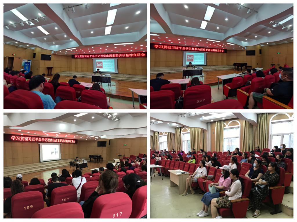 依据学校党委安排和部署,于7月4日下午四点在12号楼一层东排练厅召开“学习贯彻习近平总书记视察山西重要讲话精神宣讲会”,院党委书记夏瑞丽、院长王燕平、院党委副书记田维飞、副院长李仁伟以及全体教师参加了学习宣讲会,夏书记做了主题报告。