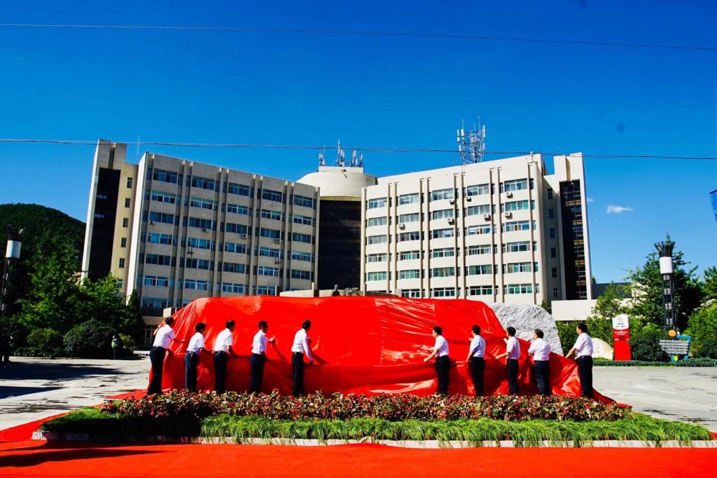”,背面镌刻着我校的办学之魂“太行精神”的精神实质:“坚定正确的政治方向、艰苦奋斗的工作作风、求真务实的科学态度、坚韧不拔的进取意识”。校名石全石长9.6米,高2.6米,重约45吨,开采自太行山原石,底部雕刻太行山轮廓,以巍峨太行山的绵延、沉稳、厚重承载了我校铸魂军工、不忘初心的红色基因,记录了我校从太行山走来的历史印记。