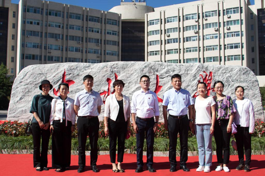 秋风送爽龙山翠,瑞石临门万象新。9月3日下午,我校在主校门门口举行80周年校庆系列活动校名石揭幕仪式。仪式上,校领导与朱可校友、眭怀明校友共同为校名石揭幕。校名石由博彩平台大全04022404班校友、江苏瀚羽轨道交通装备有限公司董事长朱可先生及我校53911班校友、扬州峰明光电新材料有限公司董事长眭怀明先生共同捐赠。