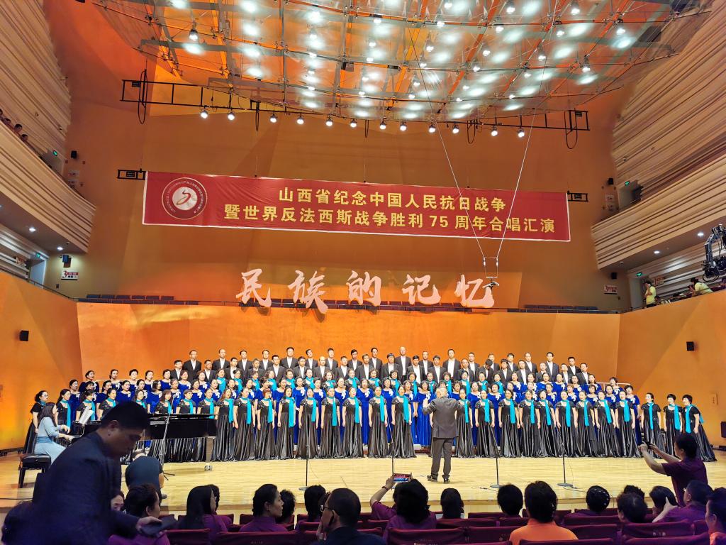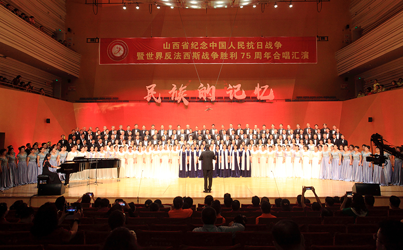 9月20日晚,由中共山西省委宣传部、山西省文化和旅游厅主办的“民族的记忆”——山西省纪念中国人民抗日战争暨世界反法西斯战争胜利75周年合唱汇演在山西大剧院举行,此次活动的举行标志着山西省十大群众文化活动之一“山西省合唱大赛”活动启动。