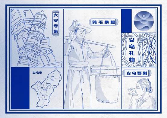 包装设计:义乌货通世界,但也不乏优秀的,有底蕴的文化背景,此组作品从义乌市的优秀传统文化切入,结合了当代年轻人喜爱的风格和元素,整体色彩使用克莱因蓝,使画面简洁明快,让世界人民享受义乌商品世界带来便利的同时,也感受到义乌传统文化的美。这才是我所理解的义乌带给世界人民真正的礼物。
