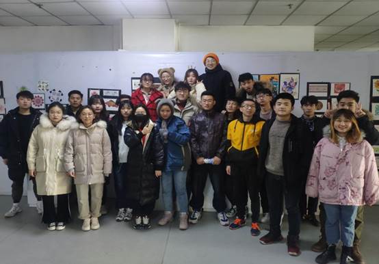 作品展前期,张老师对同学们进行分组,并让同学们分组讨论选择合适的主题并确定自己作品的手绘方向。同学们在上课过程中与张老师相互沟通交流,学习了解关于本课程的相关知识,并将所学理论知识应用到自己的作品之上,绘画出自己本课程的最终作品。