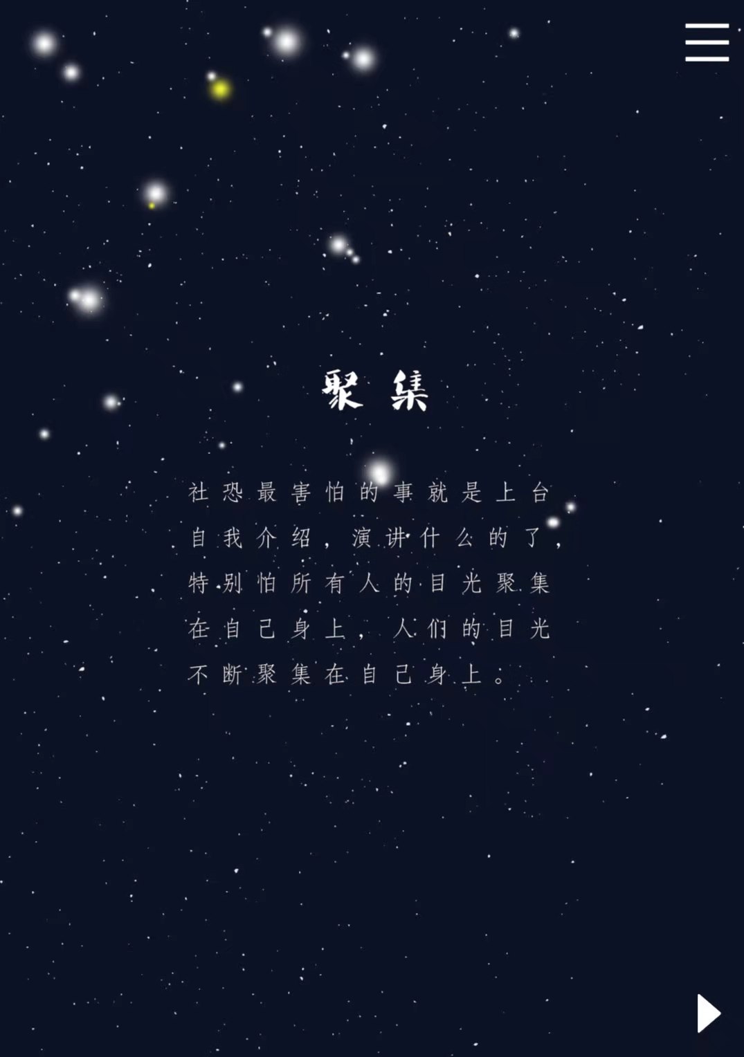 设计说明:我们的创作主题是以社交恐惧症为主,创作作品的设计平台是epub360,内容计划是想要通过社恐人群在不同的场合所表现出来不同的社恐内心,是否能够激发读者的共鸣,后面也设计了社交恐惧的基本类型,来给读者们科普,还有解决的办法。