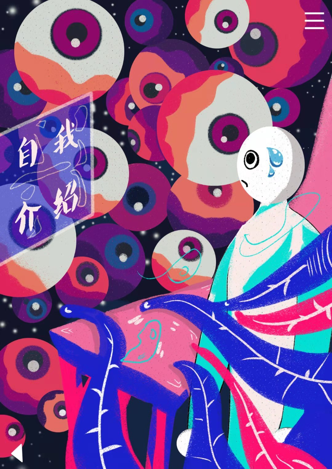 设计说明:通过“人间失格”这本书,就开始想关于社恐这个问题。很多人都不了解社恐,社交恐惧症,又名社交焦虑症,是一种对任何社交或公开场合感到强烈恐惧或忧虑的精神疾病。患者对于在陌生人面前或可能被别人仔细观察的社交或表演场合,有一种显著且持久的恐惧,害怕自己的行为或紧张的表现会引起羞辱或难堪。有些患者对参加聚会、打电话、到商店购物、或询问权威人士都感到困难。在心理学上被诊断为社交焦虑失协症,社恐并不是大家眼中的害羞。希望可以以插画模式把平时日常中社恐会遇到的场景去画出来。再用交互的方式表达出来。让更多人了解,并且理解社恐症。