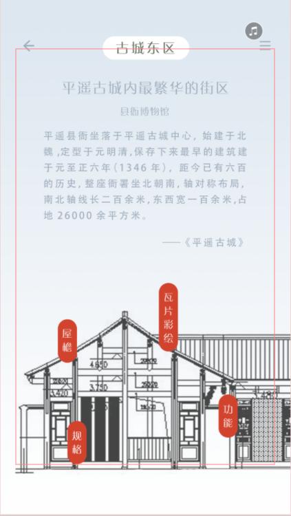 设计说明:这是一个关于平遥古城介绍的h5,以最直观的感受去了解平遥古城,主要是以插画的形式,让游客可以提前深入的了解平遥古城。本h5具有明显的分级,特性明显,有文化和建筑两个大的板块,全方位的介绍了平遥古城的文化,地域特色,历史故事,建筑特色,平面地图等。具有很高的实用价值,不只是单一的追求美感上的享受。同时这款h5的延展性非常的强大,在保留地域特色的同时,又可以向外进行开发,可开发的价值非常的高。极简的插画风格,迎合年轻人的审美喜好。