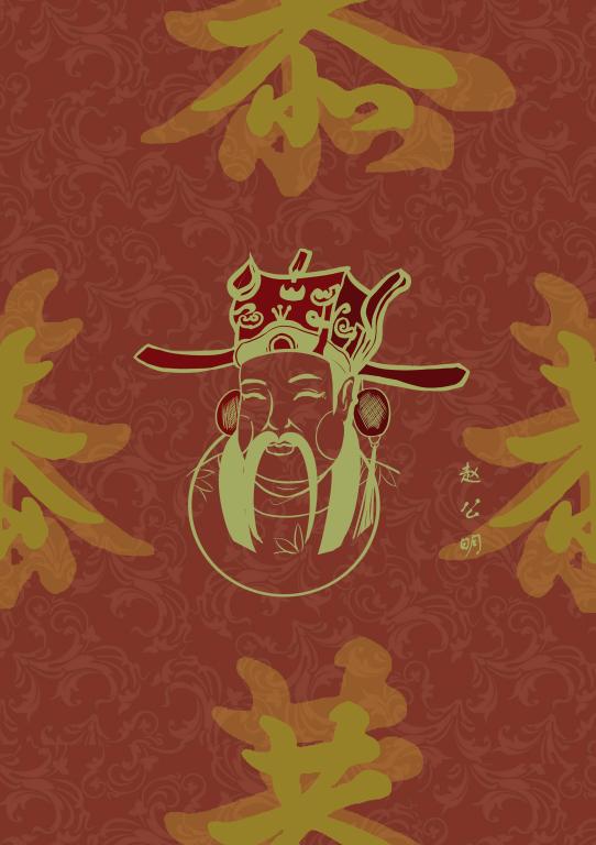 设计介绍:作品的设计主题是:财神---赵公明的符号。设计思路是简化赵公明的坐骑及手持物品来表达出他是赵公明的信息,这一系列“恭、喜、发、财”共有四张图片,均以中国传统红、黄色为主,象征着财神红红火火的风貌。整体寓意着人们对美好生活的向往和美好的期待。