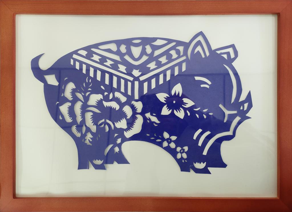 设计介绍:民间剪纸是民间文化的重要载体,是为民族文化实现的方式,是整个民间艺术最本原的文化根基,它的质地轻薄简洁。他只需一把剪刀,一张纸就可以完成。其具有民俗化、大众化的特点,我国人民对于剪纸艺术的接受度较高。而剪纸艺术本身就是平面艺术中的一种,可以培养自己的细心,耐心与观察能力。该主题是生肖,所以以鼠和猪作为原型设计剪纸,之前看缅甸印度有大象身上披着花纹毯子,所以在设计生肖猪时联想到了可以把大象背上的毯子结合到猪的身上。而且牡丹花在中国又是富贵花,所以整张作品又属身披富贵的用意。生肖鼠是第一张作品,今年正值鼠年,所以选择了鼠,也是传递幸福安康的意思。
