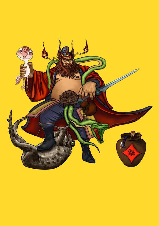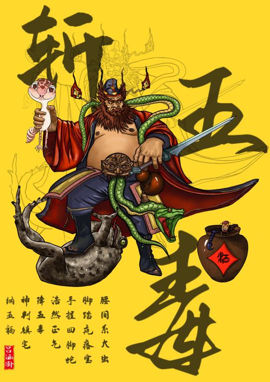 设计介绍:根据“五毒”延伸出“钟馗斩五毒”的故事,《清嘉录》中也有记述:“适逢端午,堂中挂钟馗画图一月,以祛邪魅。”于是根据此点,创作了此作品,浩然正气降五毒,希望通过此海报,能让更多的人对“五毒”这一传统习俗有更深刻的了解。