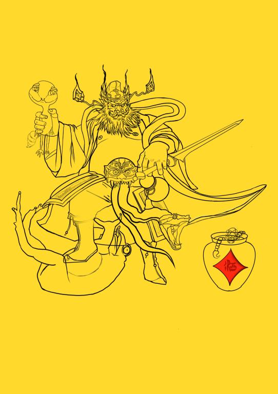 设计介绍:创作采用的是年画的表现形式,与传统年画有所区别,但又有异曲同工之妙,不像传统年画将浓烈的乡土气息融入其中,而是很巧妙的将年画的手法来与现代插画手法相结合。传统年画主要变现的是气氛喜庆吉祥,人物造型美观活泼的艺术特色,而该系列创作主要是突显年画其背后的寓意,三幅年画也是结合神话故事与生肖的传统因素来表现东方文化艺术的魅力,符合现代审美却又不丢失传统艺术。
