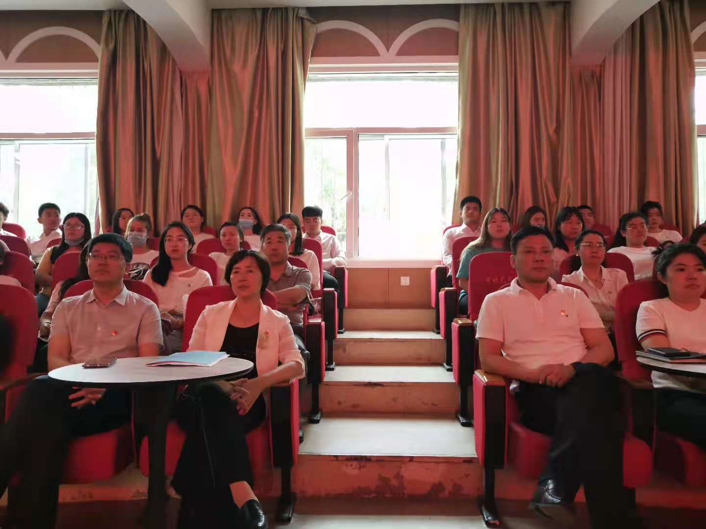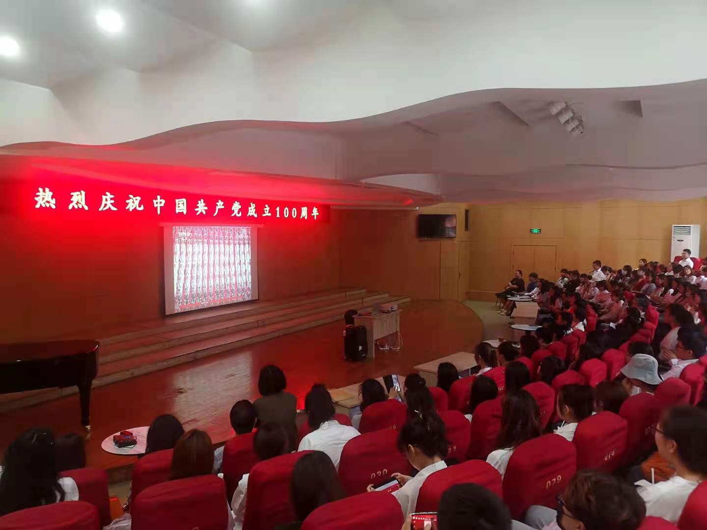 党委书记夏瑞丽、院长王燕平、副书记田维飞、院党委委员、各科室主任、支部书记等到场一同观看庆祝大会。