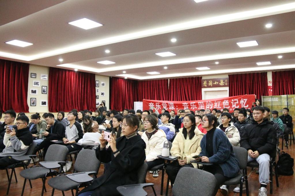 整堂音乐党课以党史为脉络,以音乐为载体,设计环环相扣、层层递进、乐史交叉,配合现场示范演唱和富有冲击力的视频画面,将听众带进了富有历史感的场景之中,将党史与艺术的融会贯通,将抽象的学术理念变得具象生动,在带给受众美好视听享受的同时,引导全体师生进一步深刻理解中国共产党波澜壮阔的百年奋斗历程,是一堂内容丰富、形式活泼的音乐党课!