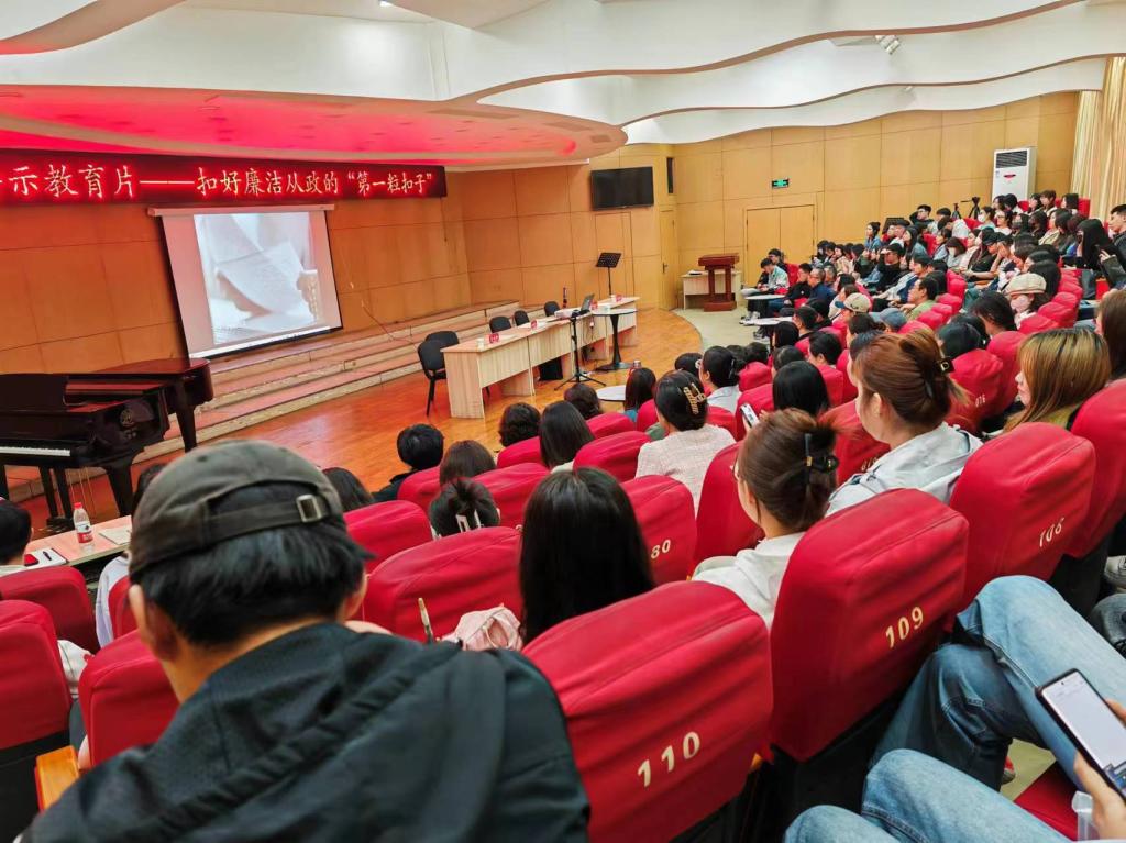 会议最后,全体师生党员共同观看了警示教育片—《扣好廉洁从政的“第一粒扣子”》,片中讲述了三起“80后”年轻干部违法违纪、背离初心,走向腐败的案例,对在场的师生党员产生强烈的冲击力和震撼力。大家纷纷表示将深刻汲取反面典型案例的教训,提高政治站位,切实增强廉洁自律意识,加强思想政治学习,在工作和生活中自觉做到自重、自省、自警、自律、自励。