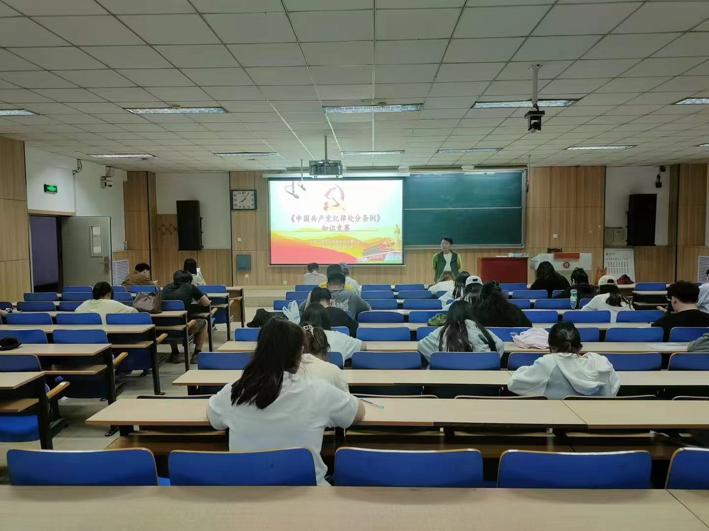 本科生第二党支部于2024年9月14日晚,在09101H教室开展了主题为“以赛促学推动《中国共产党纪律处分条例》入脑入心”党纪知识竞赛。赛事由支部书记夏志丽老师主持,支部全体党员、发展对象、积极分子参加了本次竞赛。