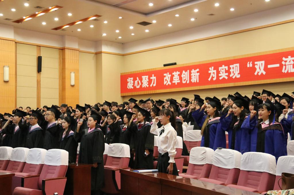向全体毕业生顺利完成学业表示热烈的祝贺,为同学们的奋力拼搏、追求卓越、不断进步点赞。她希望同学们志存高远、胸怀国家,做一名自立自强、堪当大任的人;锤炼品德、博学慎思,做一个明辨是非、坚守自我的人;致知于行、砥砺深耕,做一个奋楫笃行、矢志奋斗的人。