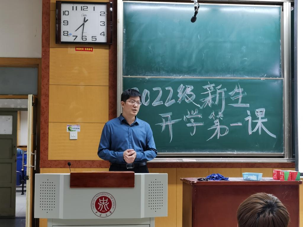 党委副书记田维飞在09101H教室为2022级新生以“绽放青春,开启大学精彩生活”为题,为新生讲授“开学第一课”。