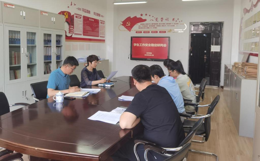 学生安全稳定工作进行了安排部署。他要求全体辅导员高度重视毕业季学生安全教育,全面开展宿舍安全大检查,及时消除苗头隐患;深入摸排学生工作中存在的安全风险点,畅通信息渠道,积极发挥学生党员、学生干部的作用;完善学生工作应急处置预案,建立安全工作台账;全力做好毕业生安全文明离校教育,耐心细致为毕业生服务,真情帮扶,为毕业生解决实际困难;加强辅导员值班值守,保证24小时开机;加强校内外学生心理健康教育、关注学生身心健康。
