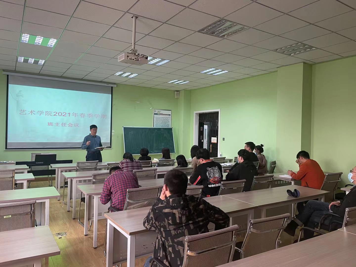 会上,田书记首先对上学期班工作进行了全面总结,着重分析了当前学生工作存在的主要问题,并详细安排了3月份学生教育管理工作要点。一是各班要认真召开新学期班会,全面总结上学期班级工作,并制定新的工作计划;二是各班级要全面筛查班级特殊群体学生,建立三级“盯、管、扶”机制,加强与家长沟通,准确掌握特殊群体学生动态;三是开展网络法规专题教育,引导学生传播正能量,严禁学生在网络媒体、自媒体等平台发布负面言论,进一步增强学生网络法规意识;四是加强疫情防控教育,时刻绷紧疫情防控之弦,提醒学生按时在企业微信中北天天报打卡;五是加强学业预警学生的帮扶教育,进一步整顿本学期学风,班主任不定期跟班听课、查课,多方面、全方位改善学风现状;六是经常性开展宿舍卫生专项整治活动,营造良好的生活环境;七是要大力培育学生的阅读爱好、体育爱好、艺术爱好,全面提升大学生的综合素养。