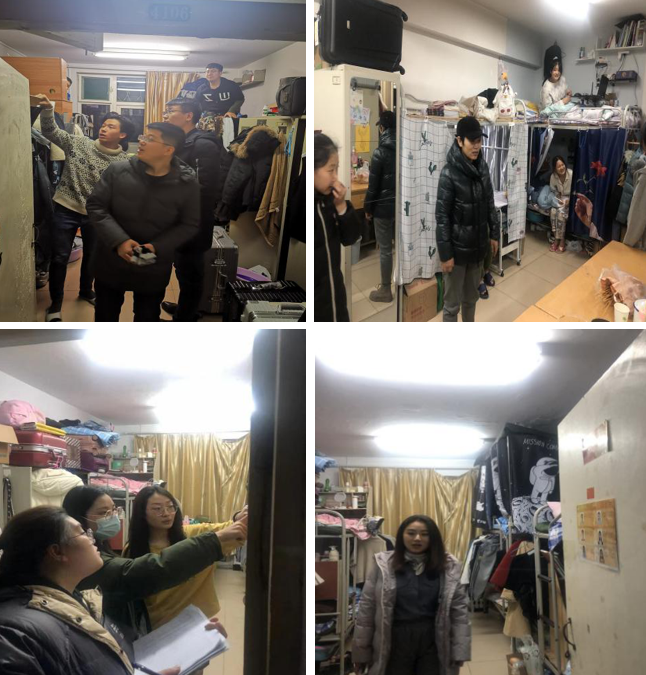 全体学生宿舍,检查了各宿舍违禁电器使用情况、易燃易爆物品存放、垃圾卫生处理、闲置物品摆放、宿舍环境等情况。在检查的过程中,老师们耐心细致地向同学们讲解消防安全知识,对存在的问题现场提出整改意见,要求同学们要增强安全防范意识,注意防火防盗,关好宿舍门窗,禁止私拉乱接电线,禁止使用大功率电器,自觉维护宿舍安全。各宿舍整体情况较好,但有个别宿舍存在一定问题,主要表现在:地面不洁、桌面杂乱、书桌混乱、床上杂乱等。老师们对这些进行了具体指导并提出解决措施,同时提示同学们做好疫情防控措施,如果发现自己或者室友出现发热、干咳等不适症状要及时到医院就诊。平时保持宿舍环境干净整洁,按时通风消毒,垃圾日产日清。
