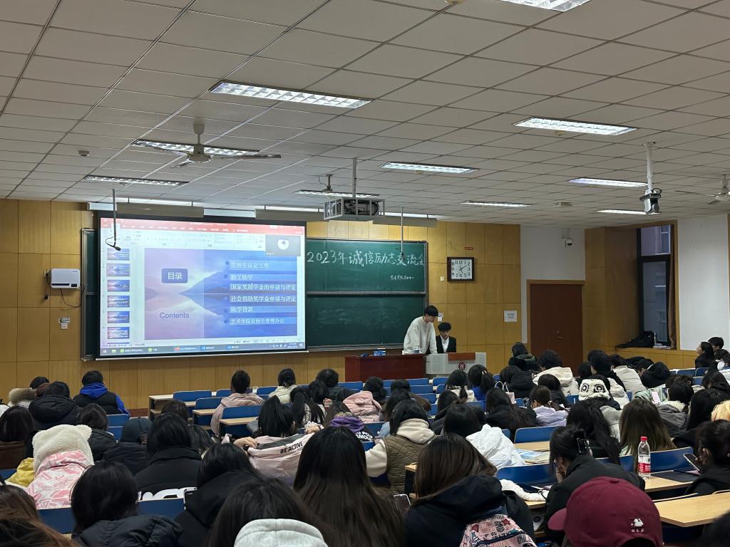 于12月12日下午五点在11209H开展2023年资助主题教育活动,全院家庭经济困难学生和大一学生参会聆听,院学生科副科长吕超老师主讲。