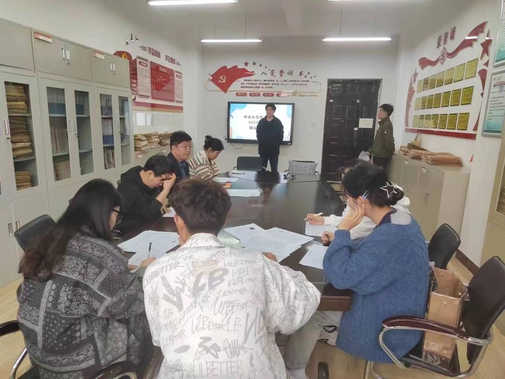 2023年“望山”奖学金评审会在9号楼5层519室召开,参加会议的是学生工作组党委副书记田维飞,学生科科长夏志丽等。