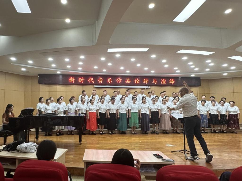 在现场,甘霖先生亲自指挥山西医药合唱团演唱了原创作品《木塔传说》。甘霖先生通过音乐的形式,将木塔的历史传说和人文精神传递给了在场的每一个人。合唱团成员们的声音充满了对家乡的热爱和对历史的敬畏,让在场的师生们感受到了音乐与文化的完美融合。甘霖先生对合唱团的演唱给予了高度评价,并表示这首作品是他为山西量身定制的,希望能够通过音乐的形式,让更多的人了解和喜爱山西的文化。这首作品在甘霖先生的指挥下焕发出新的光彩,不仅展现了音乐艺术的无穷魅力,更传递了积极向上的精神力量。